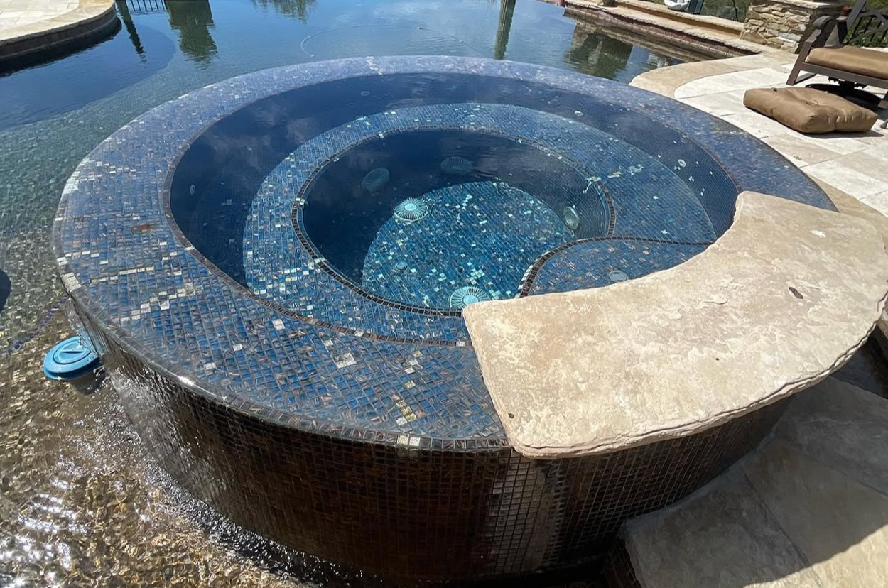 An integrated spa is a built-in hot tub that shares the pool structure but operates independently. It includes dedicated spa jets, seating and its own heating and circulation system.